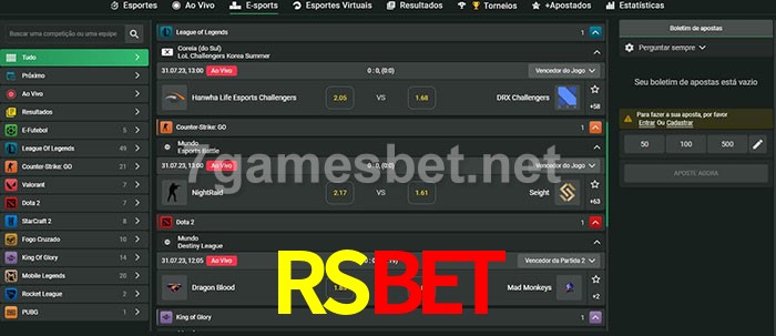 O RSBET oferece uma grande seleção de opções de apostas em e-sports com probabilidades competitivas